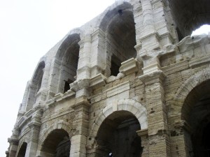 The previous day we checked out the towns south of Avignon. We started with Arles which was originally a Greek colony until Julius Caesar captured it and gave it to the veteran soldiers of his Legions. It has an ancient amphitheatre built around 90AD and could once hold 20,000 spectators. It is currently in the process of being renovated and now has modern seating for bull fights, which Arles is known for. Over the last 2000 years the city has been ravaged and rebuilt many times . We spent about three hours, walking, eating and marvelling at its buildings and monuments. There is a notorious old structure which held thousands of Jews before they were sent to the concentration camps during the Second World War. It has very old, solid doors concealing dark, foreboding cellars that you could peer into. It was a scary and sad place.