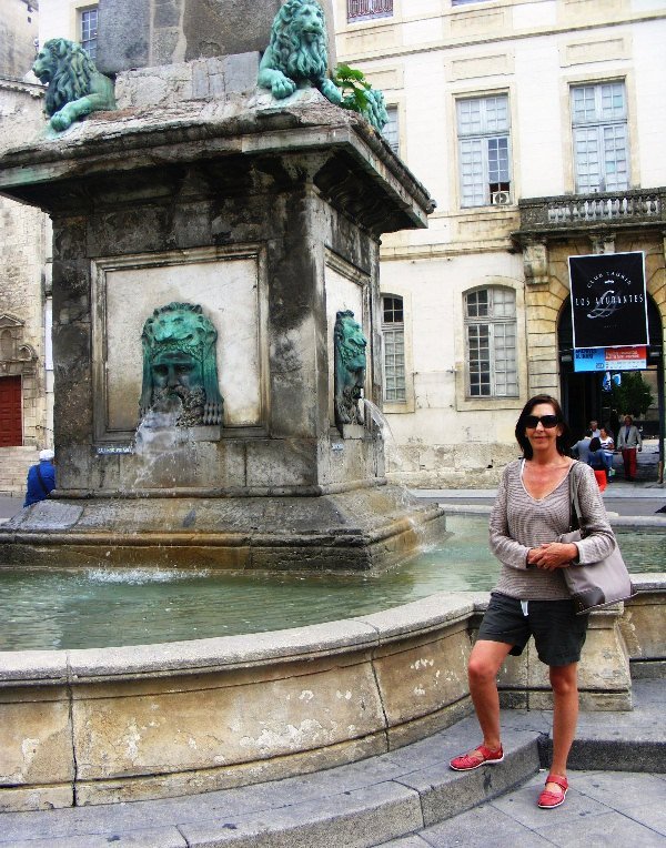 Donna beside an old fountain in Arles