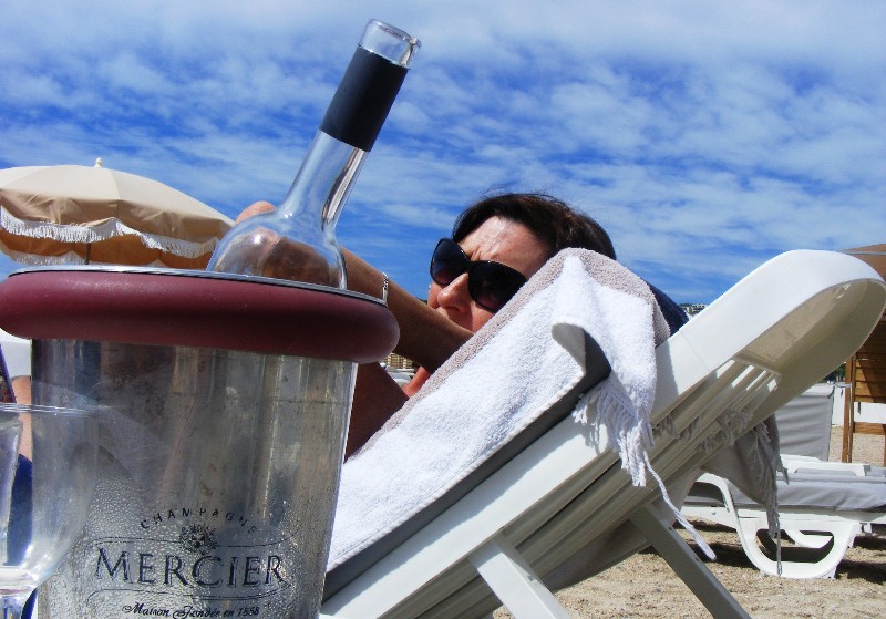 Anyway the day was tanning and swimming heaven. We splashed out and hired sun lounges, and were then waited on hand and foot.  After more Rosé wines, tasty Bruschetta sandwiches and Coke Lights, we were very satisfied with our day. So much so that we are tempted to return to the sea in a couple of days and stay there before we head to Plan de la Tour and St Tropez. We have now been to the internet café and tried to book a nice room on the coast for Thursday and Friday (waiting to hear back). Although Avignon is nice, we prefer the quiet and tranquillity of the smaller villages.