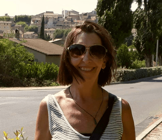 Donna strolling into Caromb.