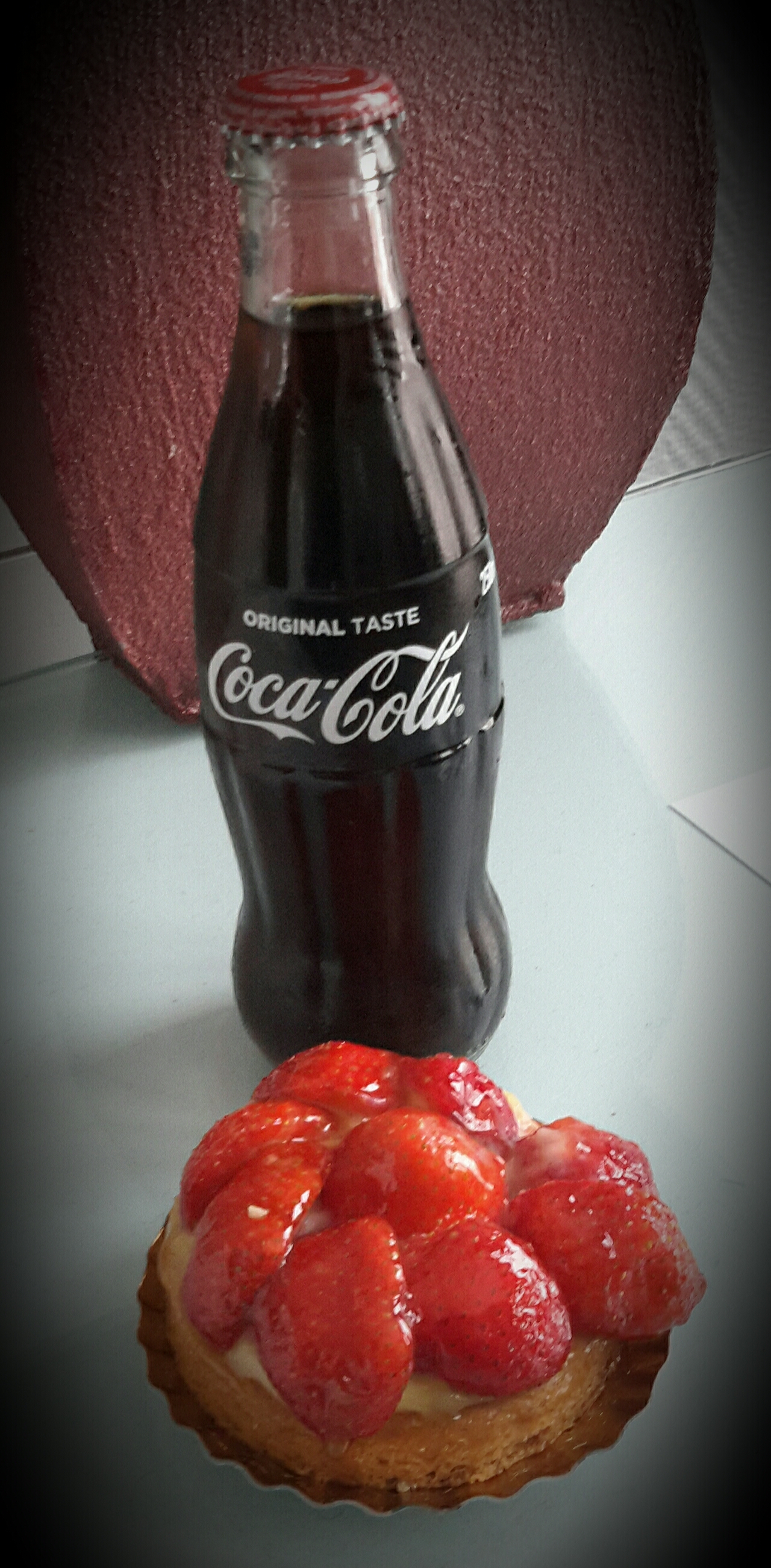 Strawberry patisserie and Coke for breakfast.